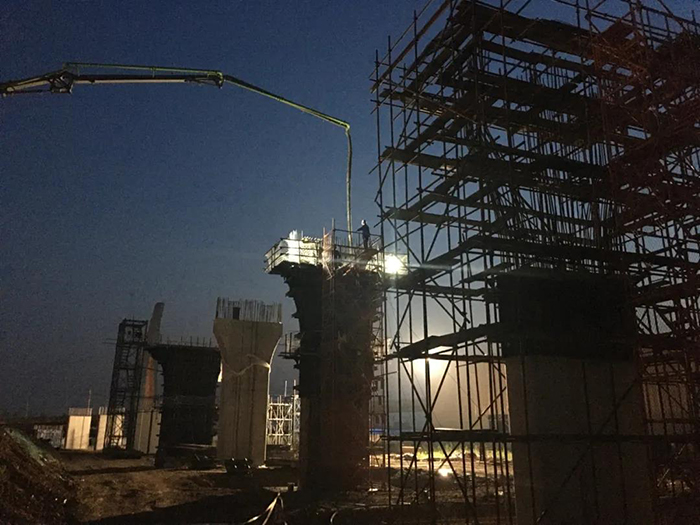 白洋港疏港鐵路長2.2公里,總投資2.7億元,是國內(nèi)第一條引入碼頭平臺的集裝箱新型鐵路,是全市首批復(fù)工復(fù)產(chǎn)項目。項目建成后,鐵路可直通碼頭前沿,大大提高貨物進出效率。11時,記者在現(xiàn)場看到,43名工人正在進行跨318國道特大橋橋墩混凝土澆注,計劃年內(nèi)完成主體工程。此外,毗鄰鐵路的白洋港水鐵聯(lián)運公路橋已完工,具備通車條件。